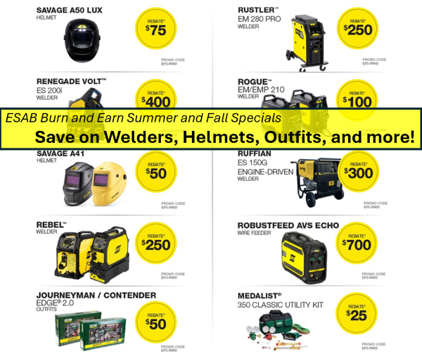 Offer is valid September 1 through December 31, 2025, or while supplies last. Burn and Earn Rebates are subject to ESAB Terms and Conditions.