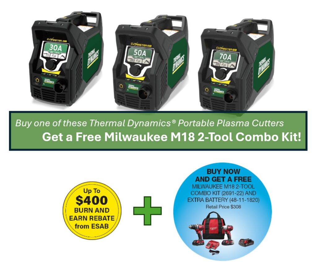 Plus, buyers of these Cutmaster Plasma Machines are also eligible for ESAB Burn and Earn Rebates.