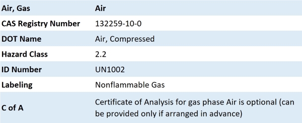 Air, USP Certificate of Conformance: View/Download