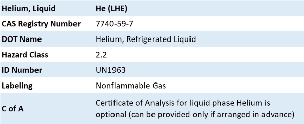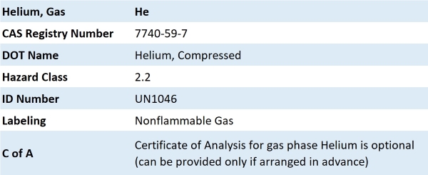Helium, USP Certificate of Conformance: View/Download