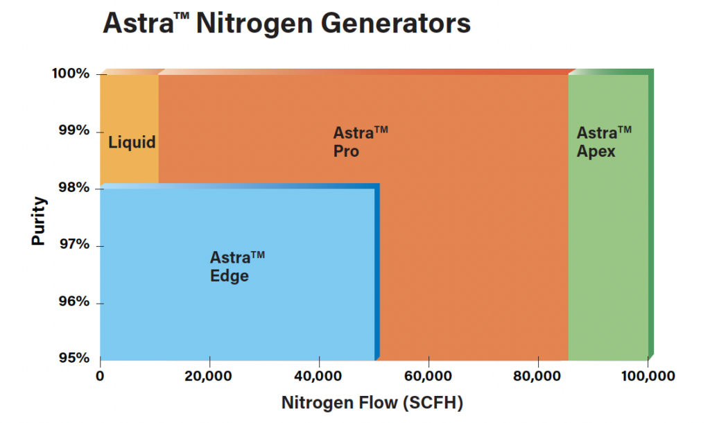 Nippon Sanso Matheson’s Astra™ Onsite Nitrogen Generators are sized to accommodate your requirements for flow and purity while delivering efficiency, reliability and cost savings at your site.